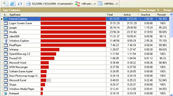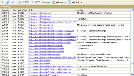 applications and accessed different Internet resources, the program tracks this information in detail, with timing and duration, storing it in an MS Access database.