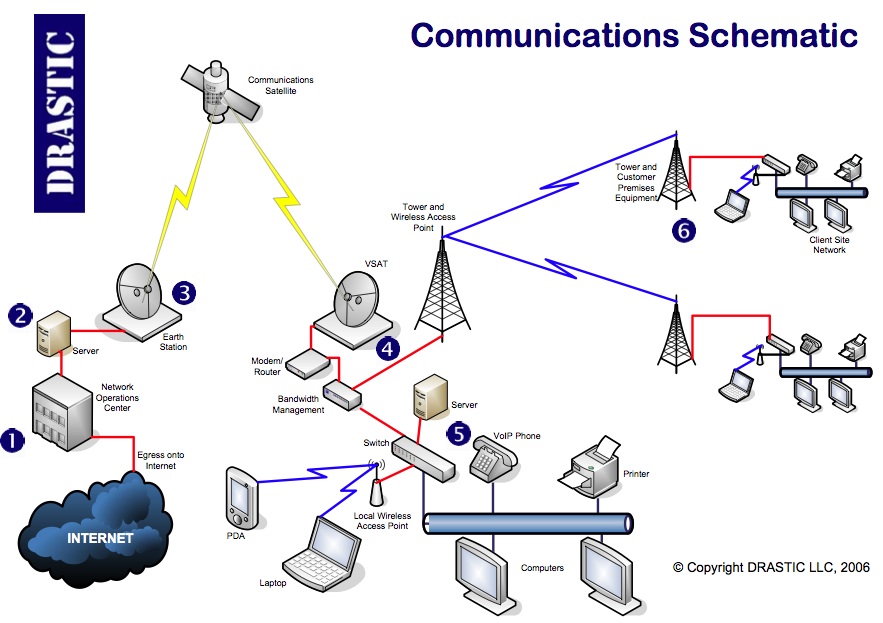 1. Network Operations Center provides 24x7 technical support, and proactively monitors the satellite network and individual sites. 2. Our content filtering servers remove unauthorized content before it uses up satellite bandwidth. 3. Our Global network is served by three earth stations in North America and two in Europe 4. DRASTIC supply VSAT equipment for your site. 5. DRASTIC can specify, supply and install whole networks. 6. DRASTIC also specializes in the provision of wireless network connections to remote sites.